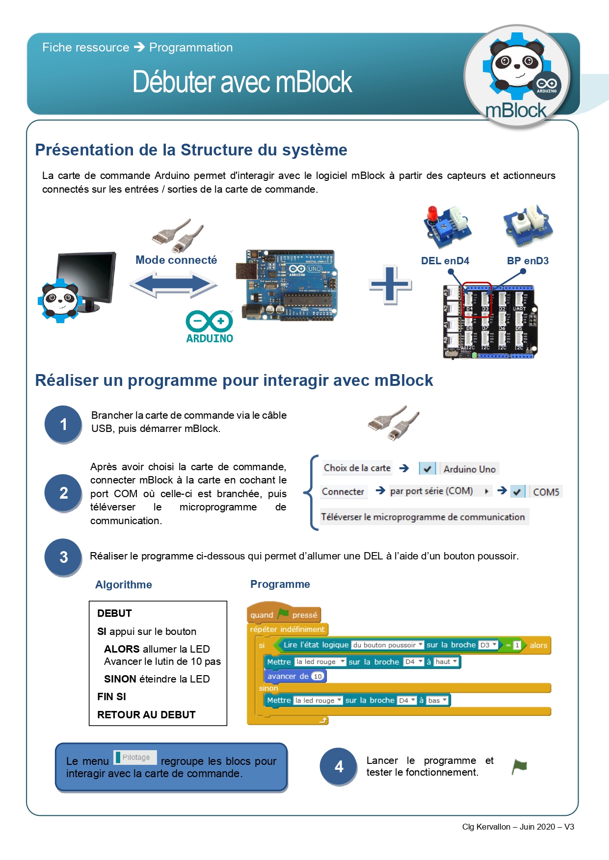 | Ressource 1 : Comment acceder à MBLOCK | Ressource 2 : Comment connecter la carte ARDUINO et les composants | |